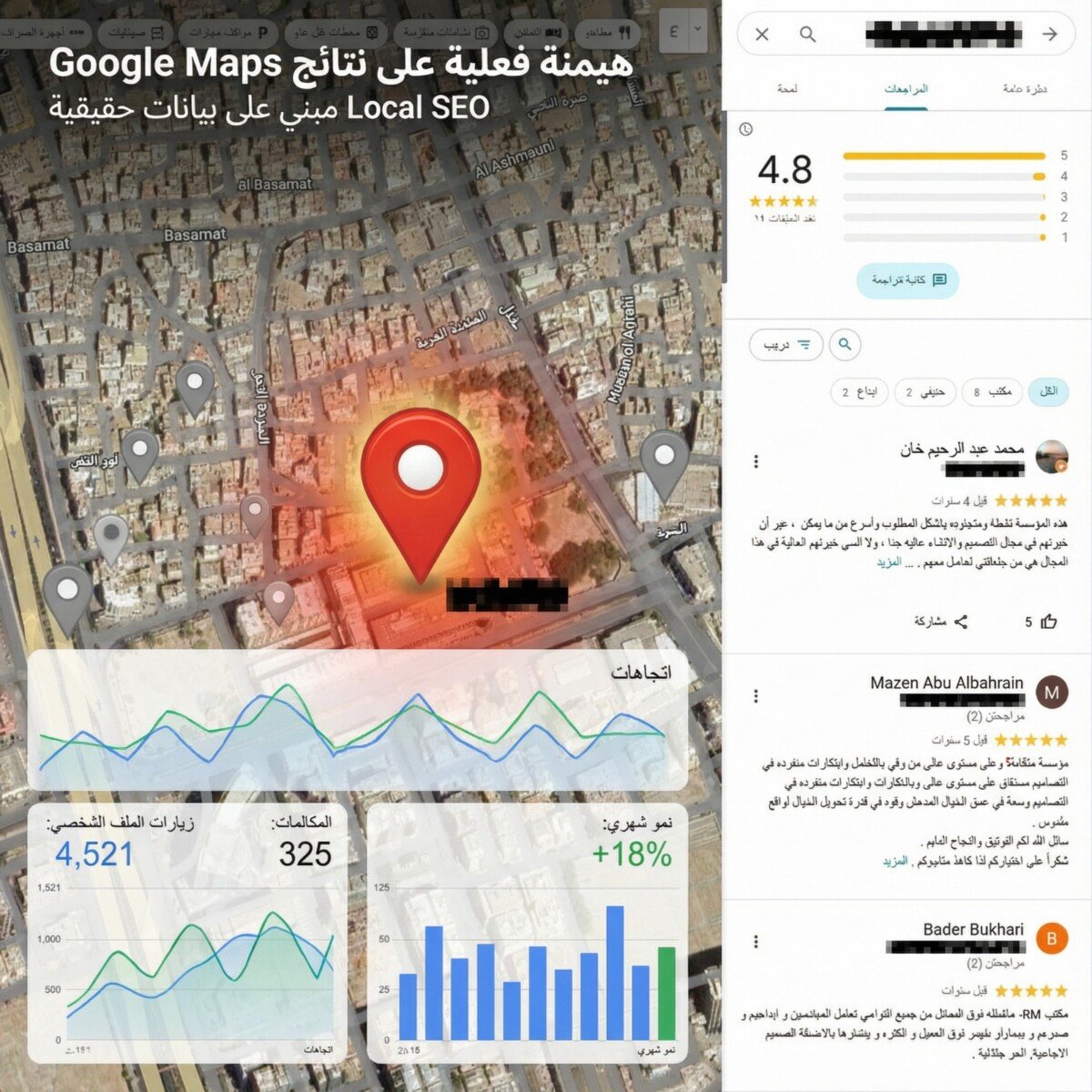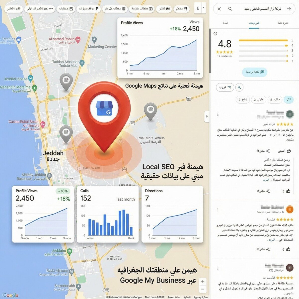 بكل تأكيد، فالتقييمات (Reviews) هي العامل رقم 1 في الترتيب المحلي حالياً. نحن لا نكتفي بضبط الإعدادات، بل نمنحك استراتيجية مجربة لمضاعفة عدد التقييمات من عملائك. ثم يأتي دورنا السحري: نقوم بصياغة الردود على هذه التقييمات وتطعيمها بكلمات مفتاحية استراتيجية (Keyword-Rich Responses)، مما يرسل إشارات قوية لجوجل لرفع ترتيبك فوراً في "الحزمة المحلية" (Local Pack).